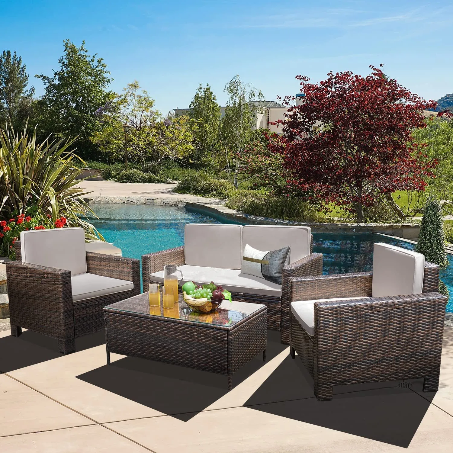 Enjoy Outdoor Comfort and Style with Our 4 Piece Wicker Patio Furniture Set