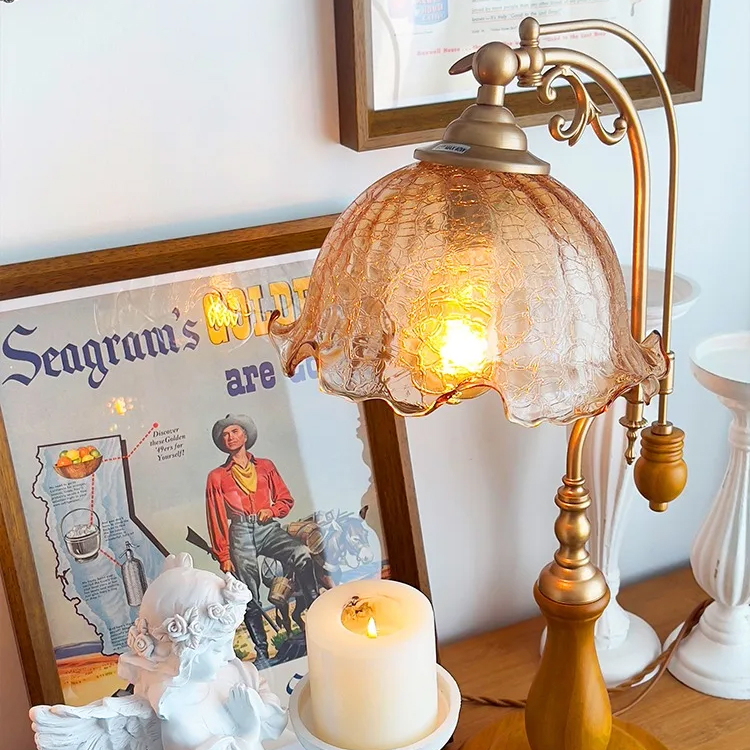 Classic Vintage Glass & Wood Table Lamp