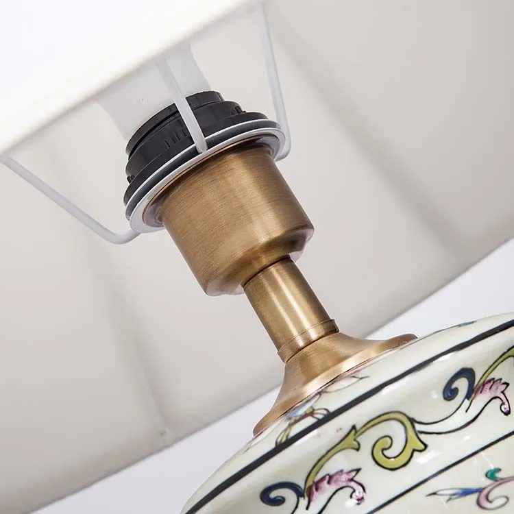 Right off the bat, as I was unboxing this lamp, it struck me that there was something really unique about it. The design just pops out at you - every little detail on its hand-painted ceramic base has been so carefully crafted, you can tell a lot of thought went into making sure piece is one-of-a. It's got that kind of charm that makes it a standout in any room. But let’s not get hung up on looks alone because what truly sets this lamp apart from the rest isn't just how good it looks but also how well it works. The cloth lampshade does an amazing job at diffusing to create this warm and cozy ambiance which is perfect for kicking back with a book or chilling after dinner. And don’t be fooled by its delicate appearance! This thing may look like a million bucks but trust me when I say, it ain't all show and no go. Despite having such an elegant and stylish vibe going on, this baby is built to last using some seriously durable materials. If you're looking for something more than your average run-of-the-mill lamp then this might just be what you've been searching for. Not only does it have killer aesthetic appeal but also delivers big time in terms of functionality while promising longevity too. And honestly? That's pretty much everything anyone could ask for in a lamp if you ask me!